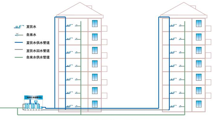 高效節能型管道分質供水成套設備與分質供水管網優化設計相結合,形成獨特的技術風格,整套係統經多項工程驗證,對水中病菌、重金屬、有機汙染物去除率均超過95%,出水水質甘甜可口,可直接生飲。